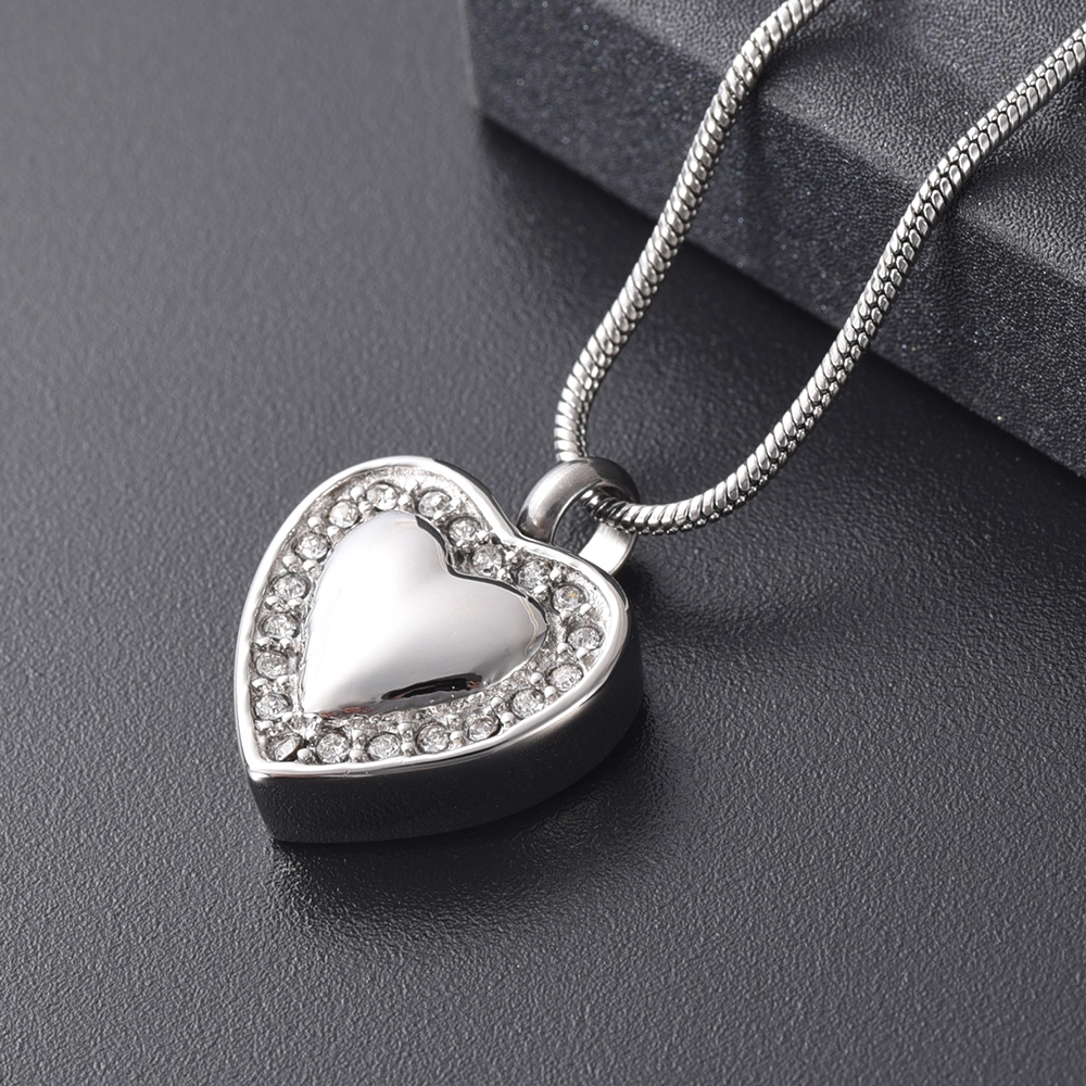 Naszyjnik / relikwiarz na prochy ze stali szlachetnej SERCE Z CYRKONIAMI SILVER