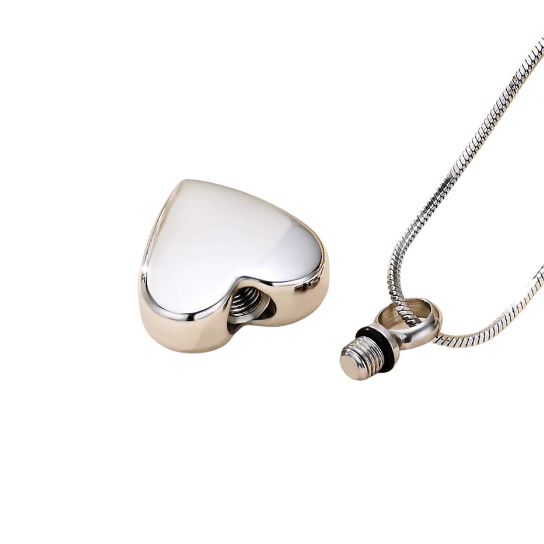 Naszyjnik / relikwiarz na prochy ze stali szlachetnej SREBRNE SERCE